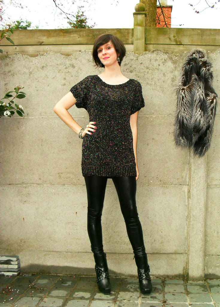 I felt like dressing a bit glamrock today, with my leather look leggings, some sparkles and some faux fur. Obviously the crazy platformboots could not be left out.